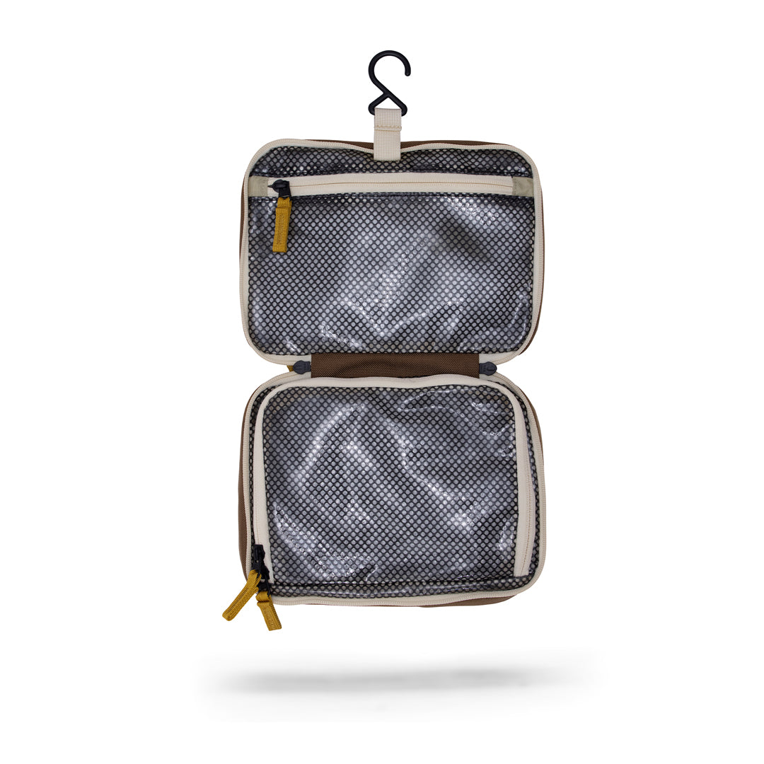 The Toiletry Kit is the perfect addition to the Walker Family and frankly kind of embarrassing that we haven't released this bad boy sooner! Designed to keep your bathroom essentials secure and organized while you travel. Designed with a hook for optional hanging, two main compartments, and then a front compartment with designated spots for a toothbrush/clippers/ and tweezers.